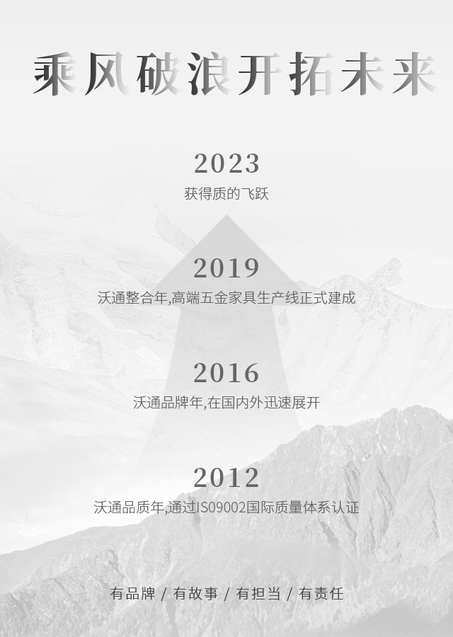 沃通五金將積極弘揚(yáng)中國家具文化,綜合國際家具潮流,運(yùn)用無限的創(chuàng)意,設(shè)計生產(chǎn)出大量造型美觀,引領(lǐng)時代潮流的新產(chǎn)品。